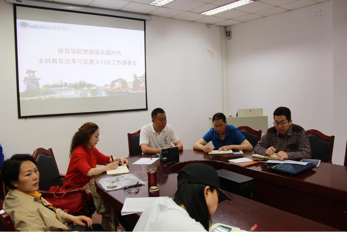 4月23日上午八点二十,体育学院在望江体育馆一号会议室召开“贯彻落实新时代本科教育改革与发展大讨论”工作部署会,会上韩海军副院长代表学院班子向学院全体干部传达了18日学校召开的“英国上市公司365新时代本科教育改革与发展大讨论工作部署会”的“654”会议精神。本次会议正式开启了我院贯彻落实英国上市公司365新时代本科教育的改革与发展大讨论的系列工作。