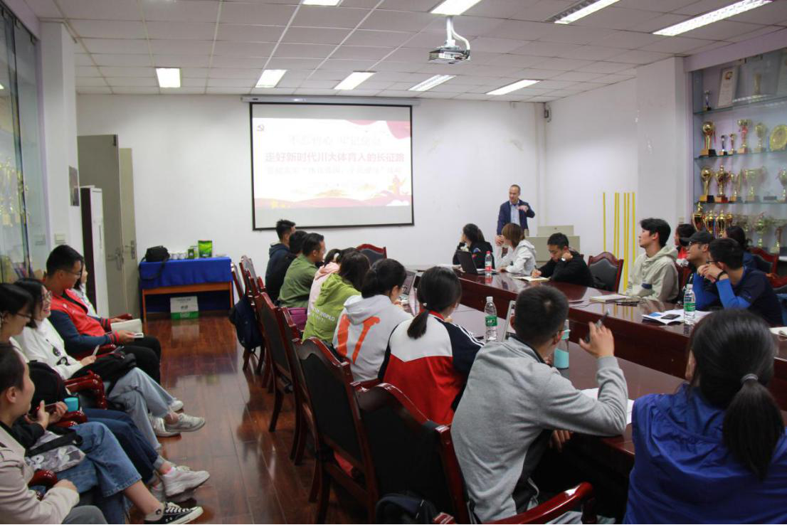 向勇同志以“不忘初心、牢记使命-走好新时代川大体育人的长征路”为主题,向学生党员强调理论武装,做习近平新时代中国特色社会主义思想的坚定信仰者和忠实实践者的重要性和必要性,并结合近期国务院办公厅“体育强国,全民健身”战略文件精神,指出并分析了不足之处,如何进一步发挥学生党员先锋模范作用,向院长指出,要站在讲政治的高度,重整行装再出发、撸起袖子加油干,以时不我待只争朝夕的精神为学校“双一流”目标做出体育人特有的贡献。
