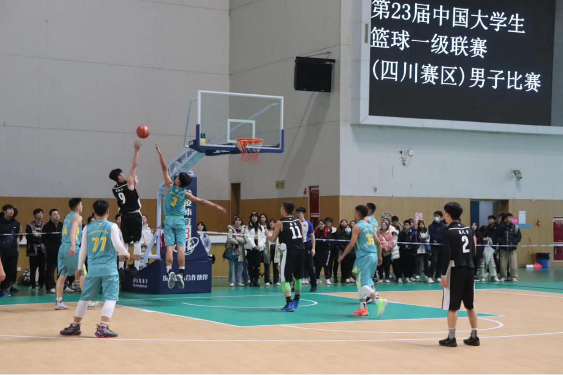 小组赛第二场对阵川外成都学院,一上来川外成都学院精准的外线手感,让比分陷入胶着,川大后场双子星2号聂凡章、17号文德沐凭借着出色的防守和个人能力,多次上演抢断快攻的戏码,帮助川大紧咬比分。比赛进入中段,川大9号詹浩源站了出来接管比赛,里突外投,帮助川大迅速拉开比分差距。第三节末端,替补奇兵18号潘雨连续的两个无视防守的三分,一锤定音,杀死了比赛,川大73:50,斩获小组头名,挺进16进8淘汰赛。