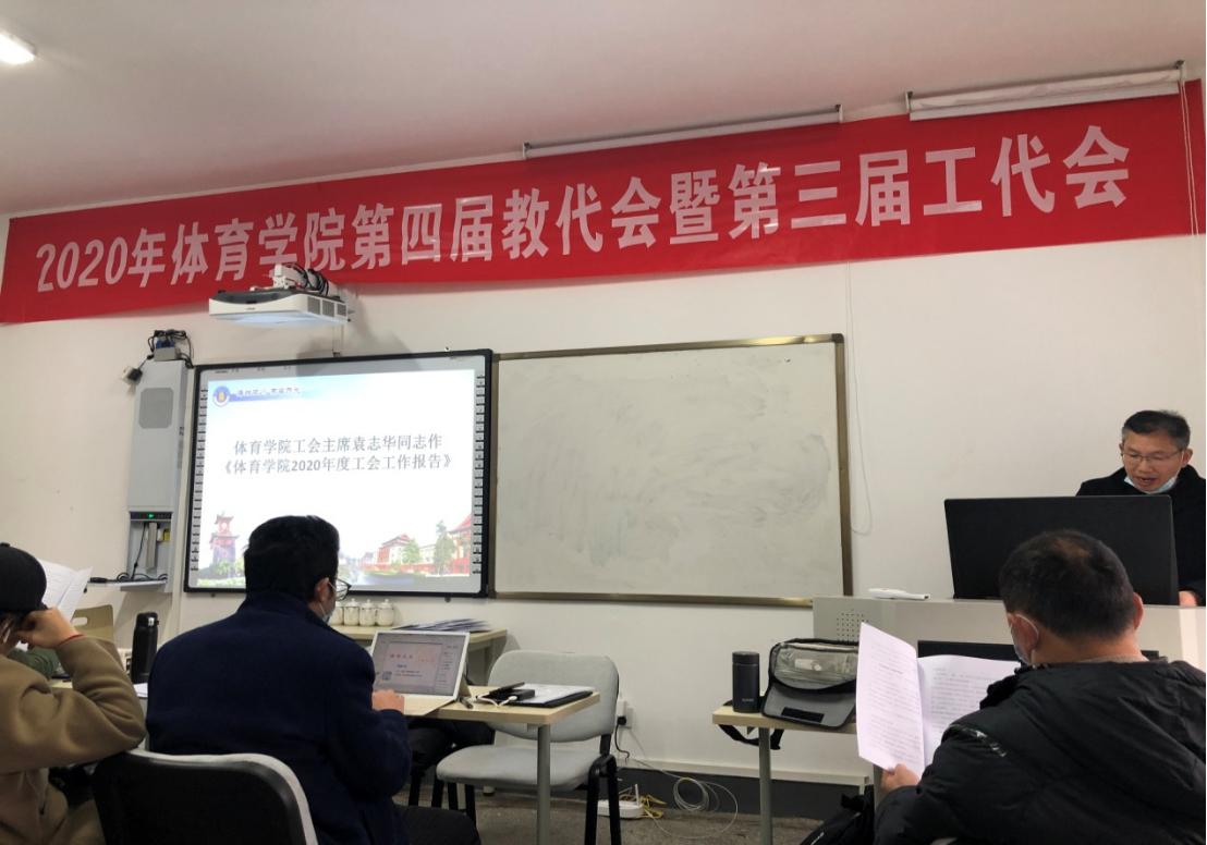 按照学习贯彻十九届五中全会精神的要求,在制定谋划学院十四五发展规划的关键时候,我院第四届教代会暨第三届工代会第四次会议经过精心筹备,12月25日开幕了!大会的指导思想和主要任务是:学院“双代会”要在党总支的领导下,保持和增强政治性、先进性和群众性,团结带领广大教职工,围绕学院十四五及未来十五年科学发展这一主题,积极探讨、集思广益、献计献策。本次大会听取和审议了《体育学院工作报告》、《体育学院财经工作报告》、《体育学院工会工作报告》,并对三个《报告》以及《体育学院绩效分配考核办法》中关于科研工作量认定的部分修订内容进行了表决。