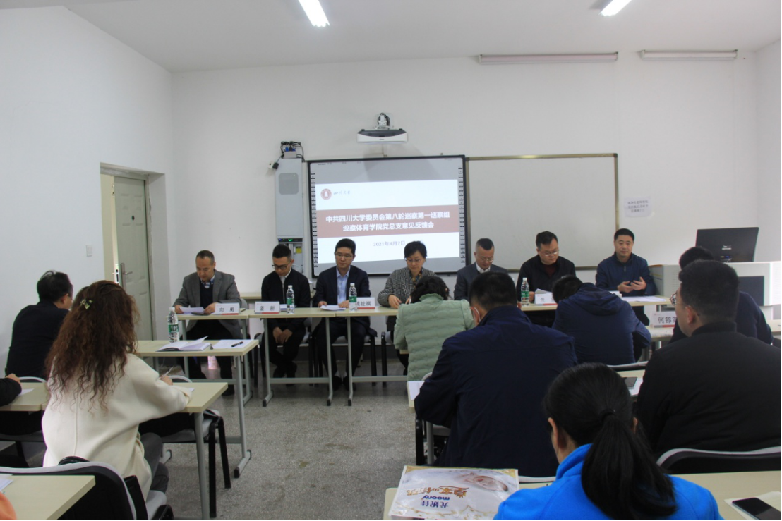 4月7日上午,学校党委第八轮巡察第一巡察组巡察体育学院党总支意见反馈会在望江东区游泳池二楼会议室举行。