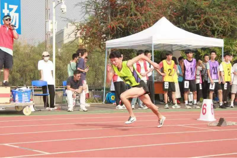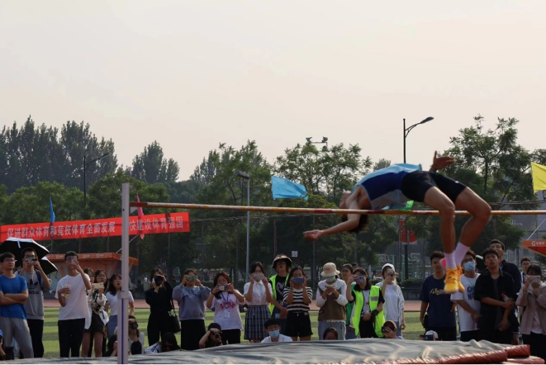 在我校第五届体育文化节暨2022年田径运动会的首日,来自材料科学与工程学院的徐晨昊同学以2.15米的成绩打破了我校男子跳高2.07米的赛会记录。与此同时,来自文学与新闻学院的唐印同学以51″29的成绩打破我校男子400米跑51″50的赛会记录。