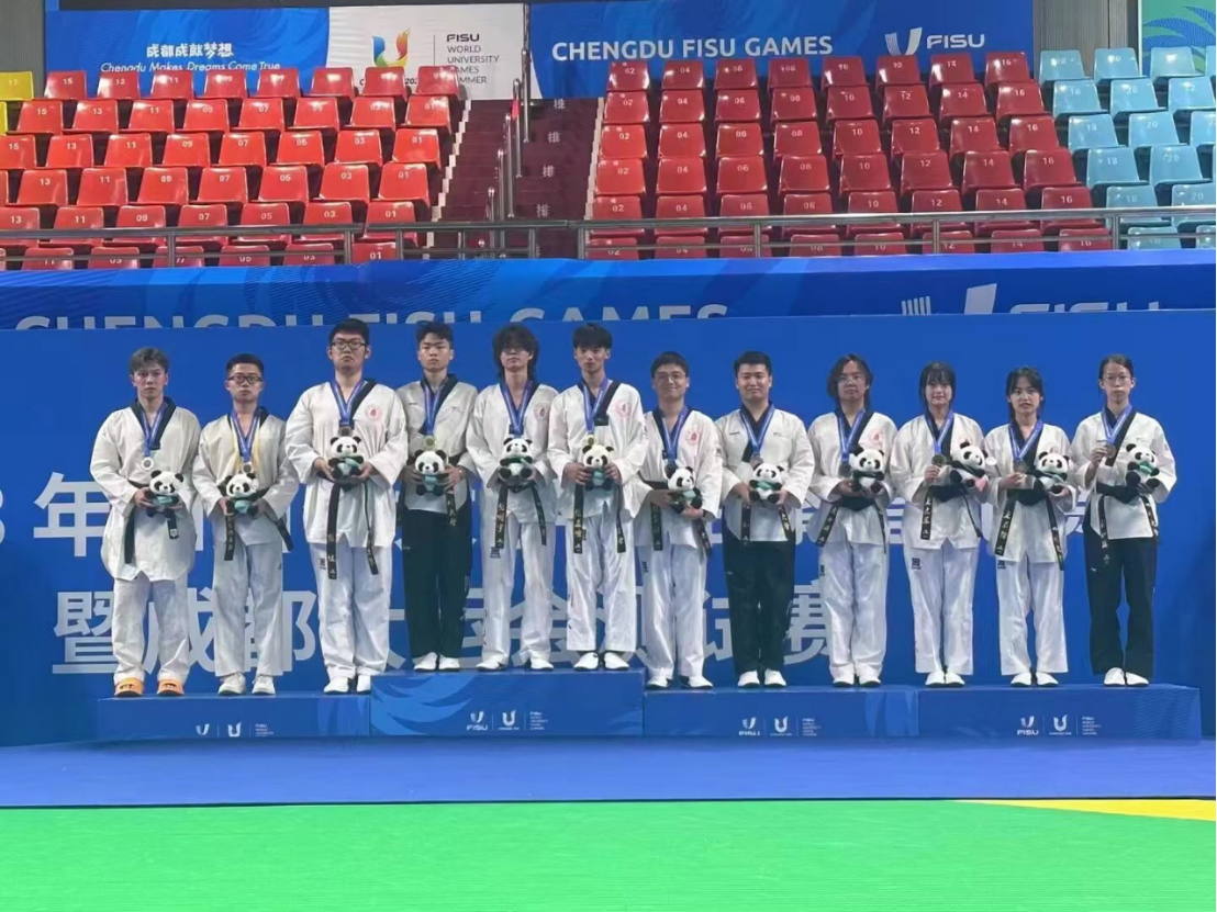 经过为期两天的激烈角逐,我校跆拳道队斩获4金、6银、7铜,取得了甲组品势项目团体第一,竞技项目团体第一的好成绩。校跆拳道队队员们在比赛期间展现出顽强拼搏的体育精神,获得了大赛组委会、兄弟院校领导、教练的一致好评。