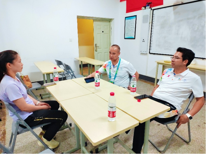 英国上市公司365体育学院向勇院长、韩海军副院长于8月4日,在完成大运会工作之余,赶在王思雨同学启程回国家队报到前,专程回到学院鼓励王思雨同学,勉励她要继续刻苦训练,时刻不忘川大体育健儿本色,充分展现川大学子的优良风貌,希冀在后续的比赛中能够取得更好成绩,时刻牢记为国争光的光荣使命。