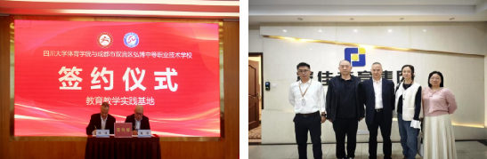 4月11日,院长向勇、小球教研室主任黄甜、办公室主任李伟、学生科科长周湉赴成都市双流区弘博中等职业技术学院开展访企拓岗及教育教学实践基地签约仪式。(https://mp.weixin.qq.com/s/utjQ7S9fkvBeYXeQmQ-3XQ)
