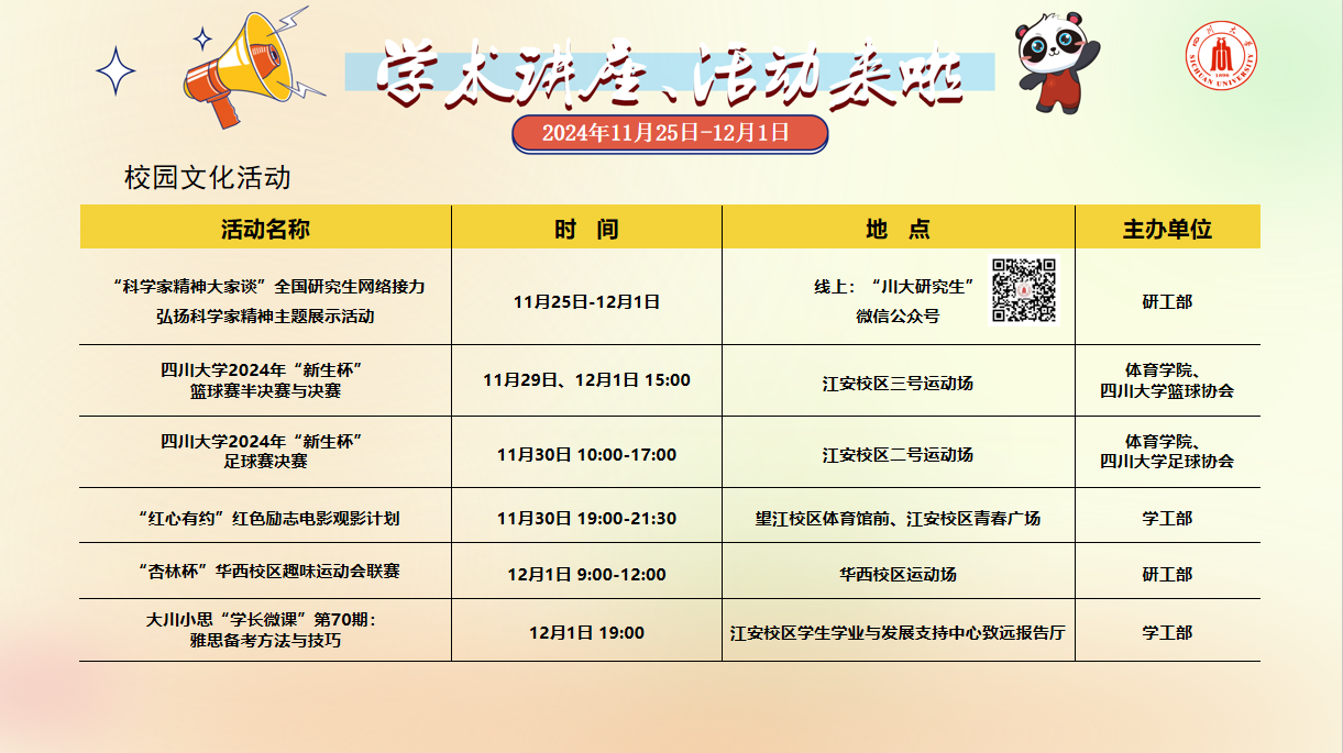 学术讲座及校园活动文化预告(12月2日-12月8日)