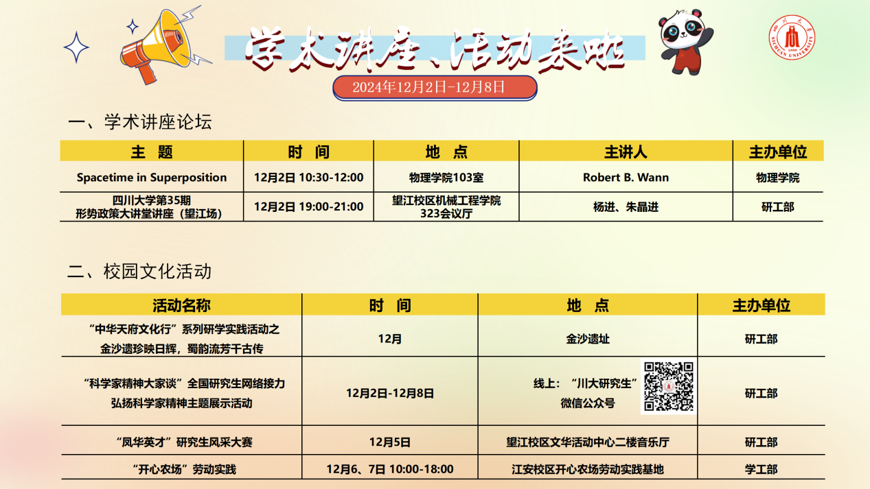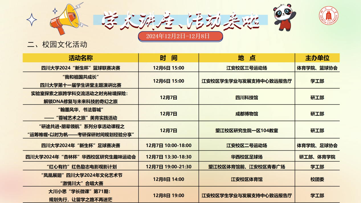 学术讲座及校园活动文化预告(12月2日-12月8日)