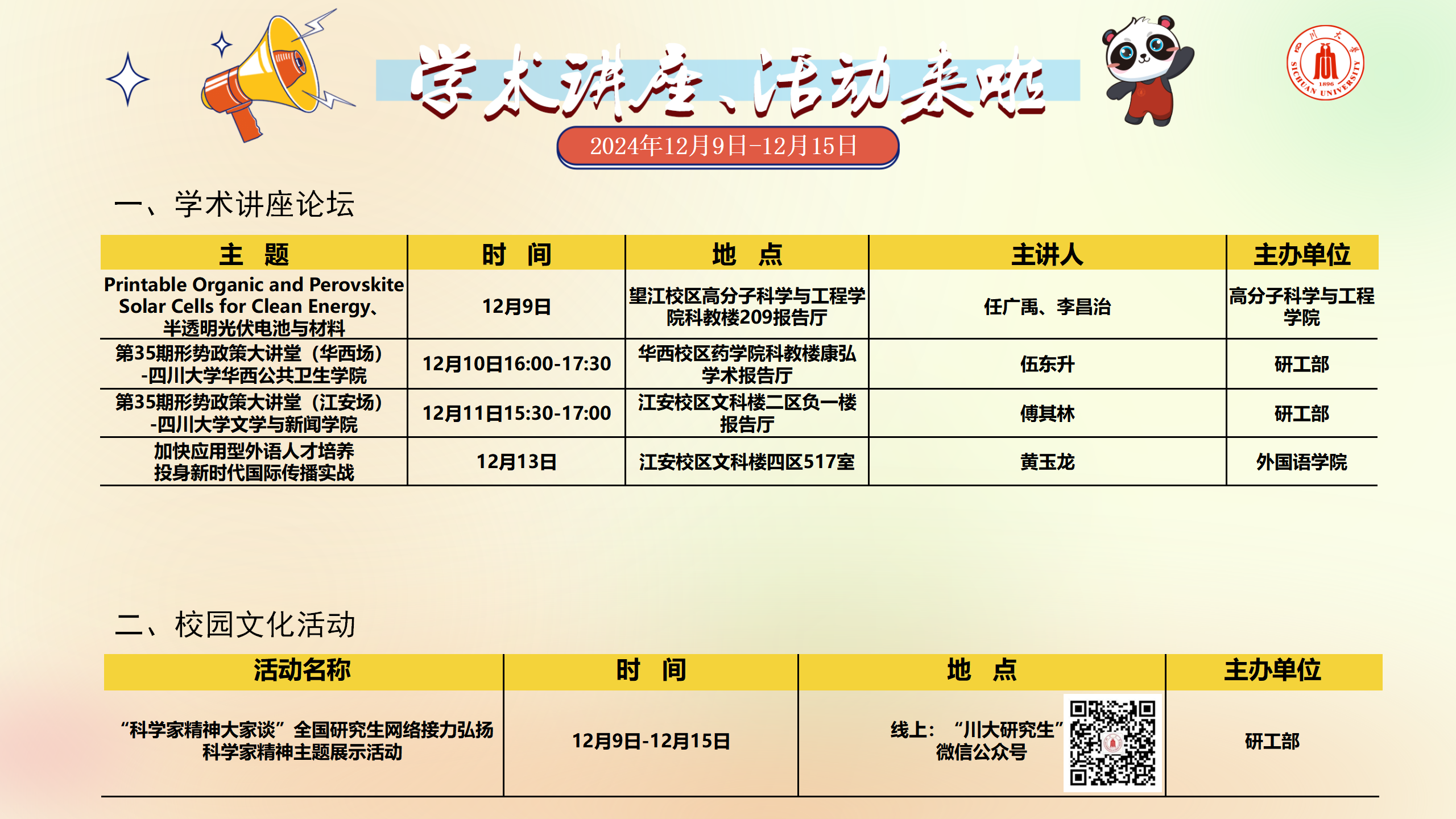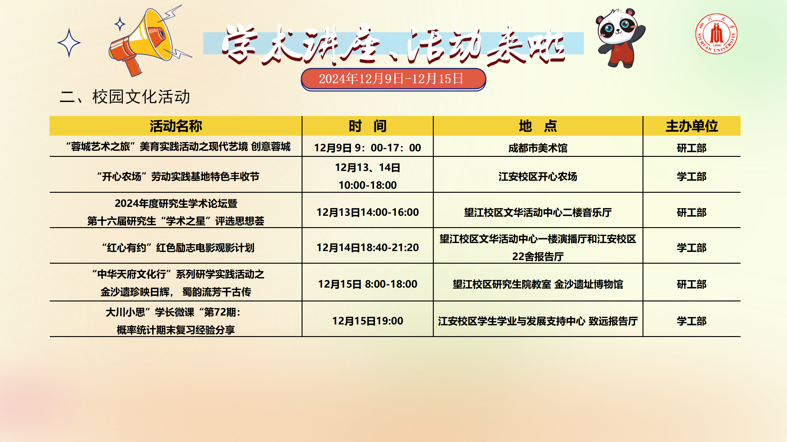 学术讲座及校园活动文化预告(12月9日-12月15日)
