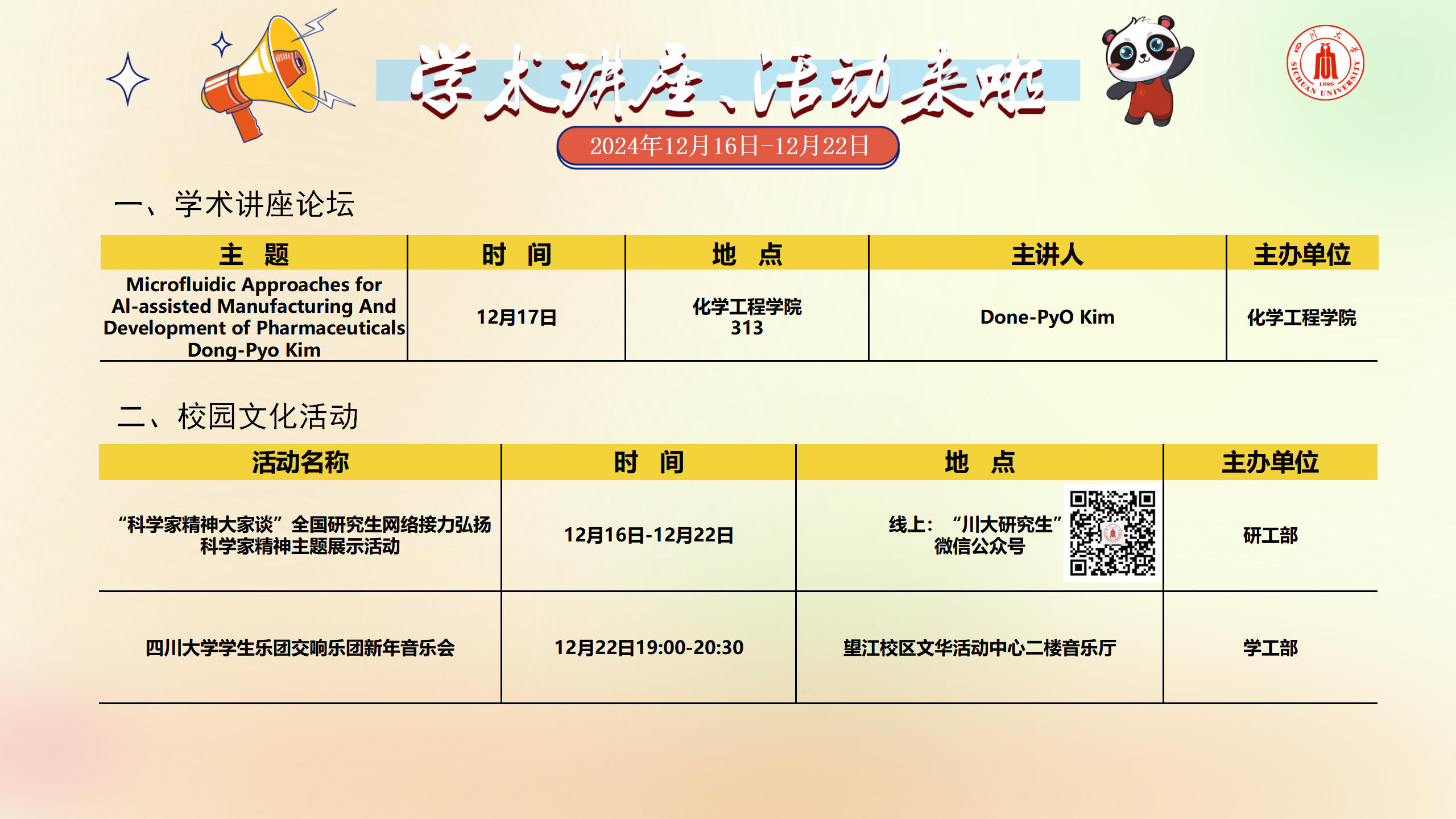 学术讲座及校园活动文化预告(12月16日-12月22日)