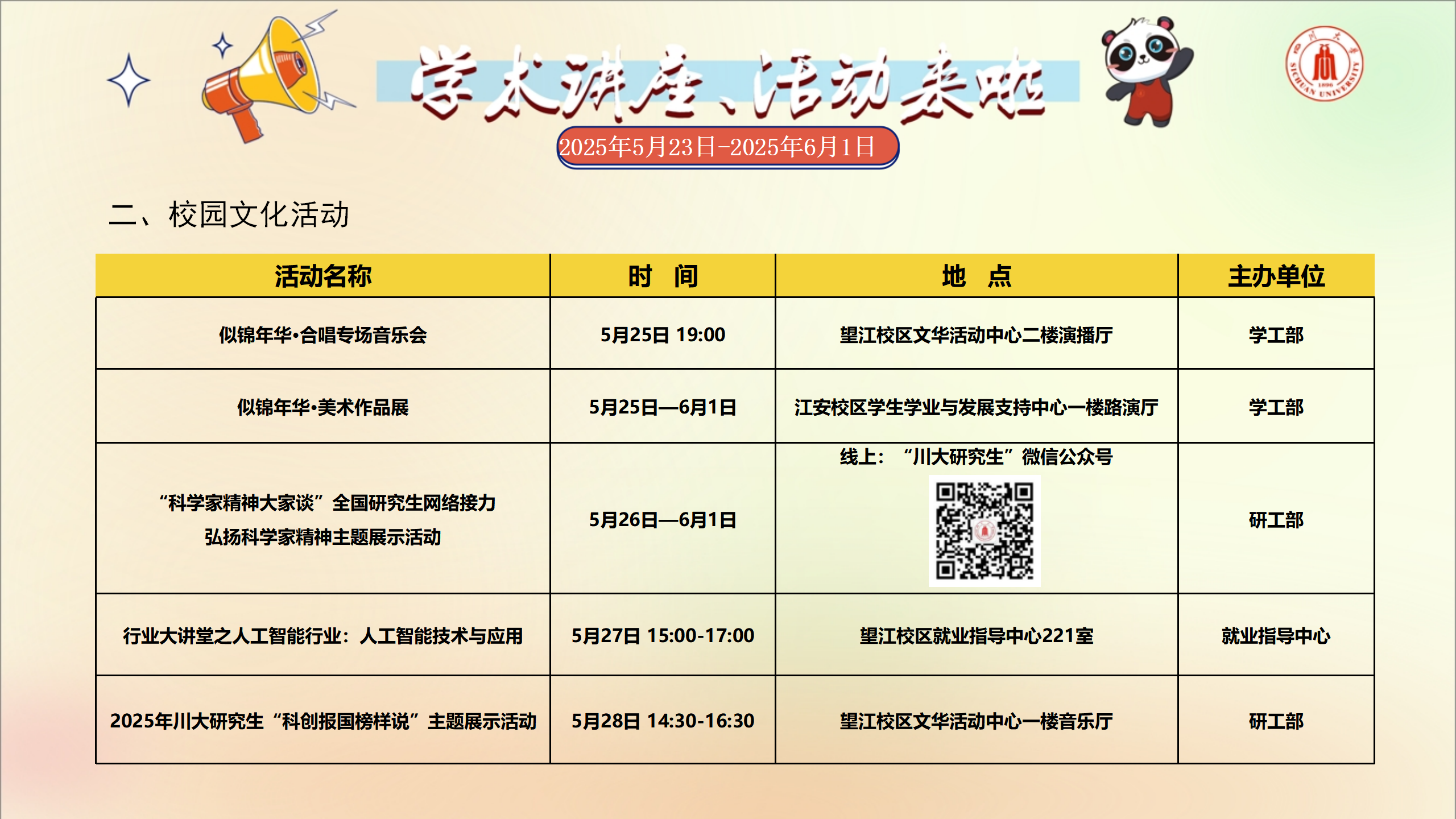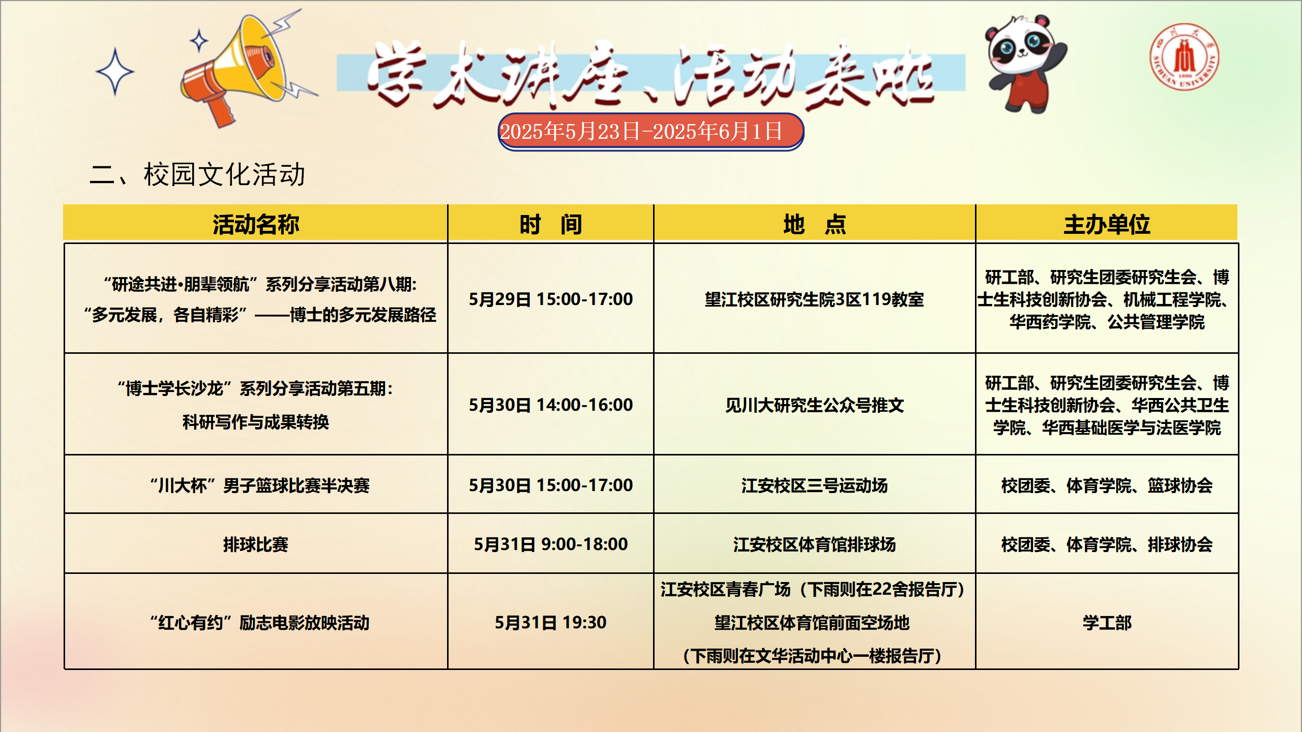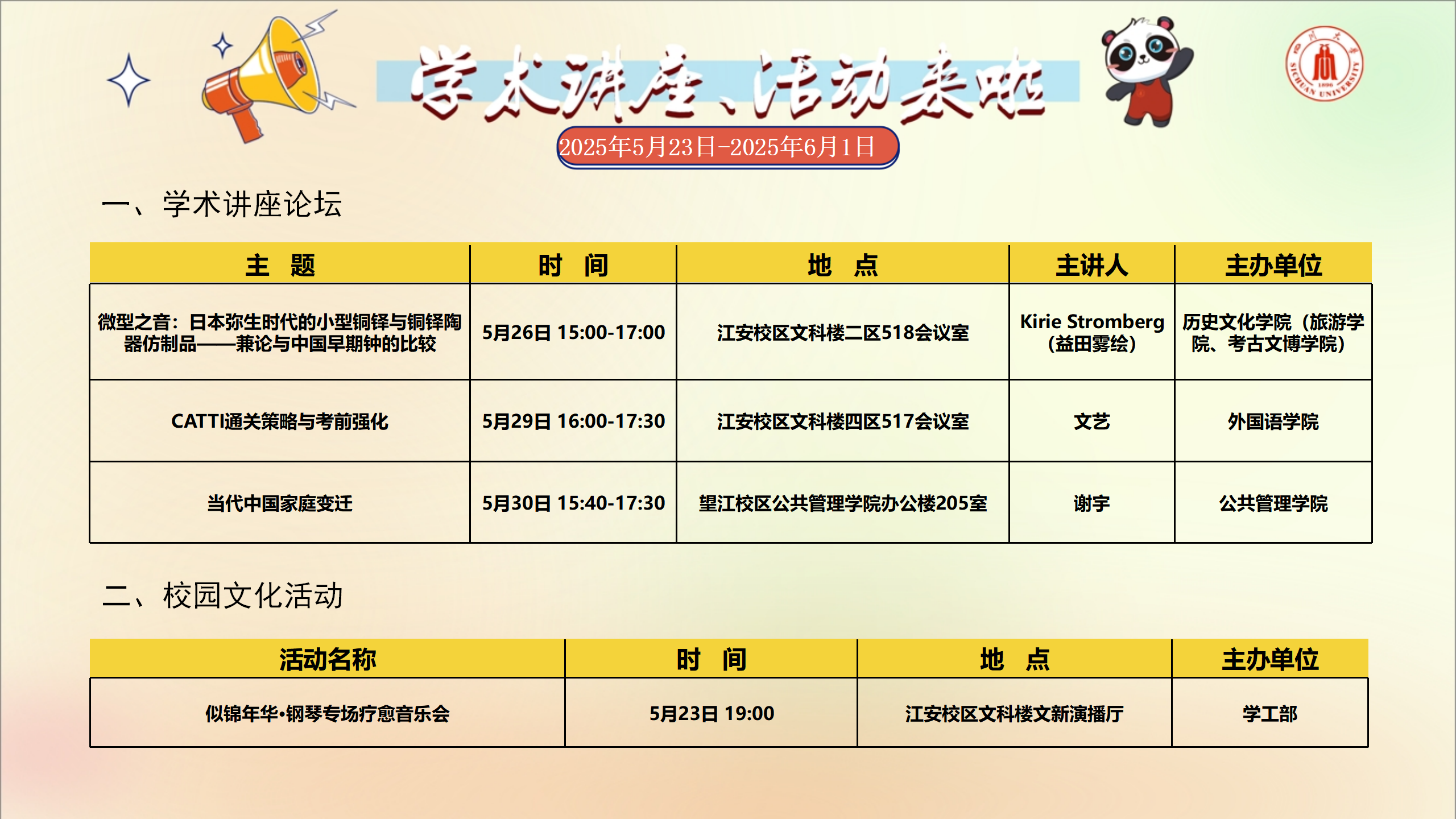 学术讲座及校园活动文化预告(5月26日-6月1日)
