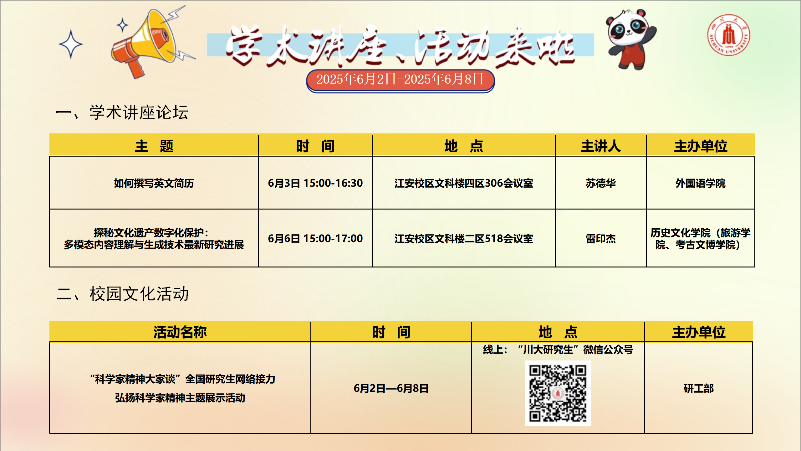 学术讲座及校园活动文化预告(6月2日-6月8日)
