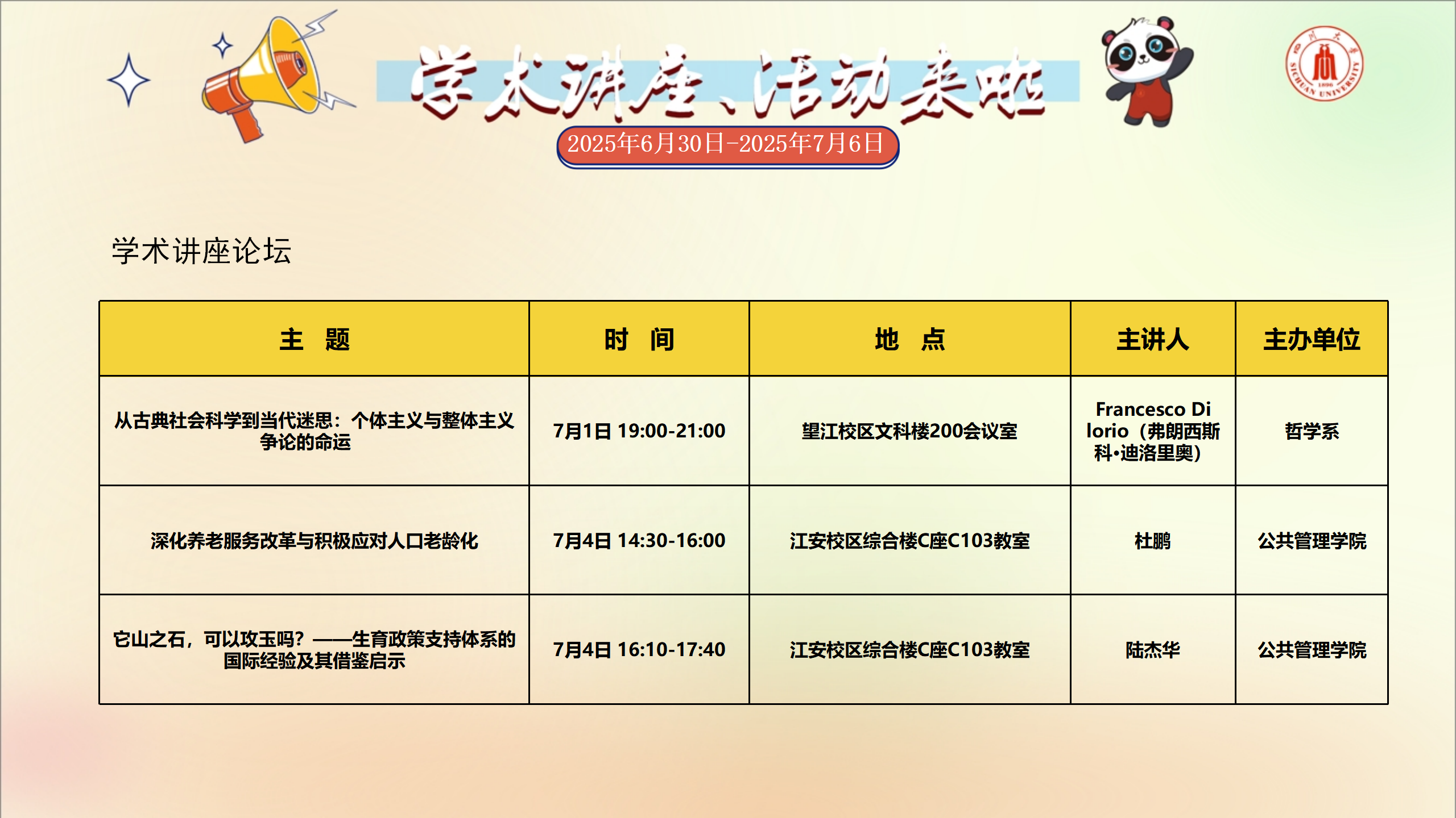 学术讲座及校园活动文化预告(6月30日-7月6日)