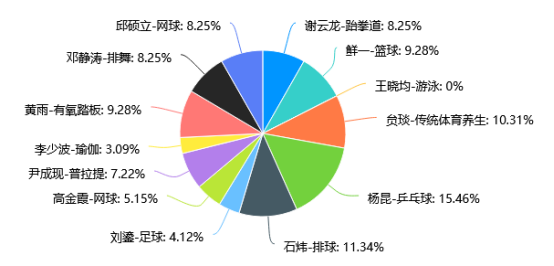 为充分发挥优秀教师模范带头作用,提高青年教师的教学实践能力和课程教学质量,体育学院于教学第11-12周组织开展了2021-2022-1学期的体育教学示范课观摩和公开课看课活动。本次教学研讨交流活动由学院领导班子亲自带队,共计推出8堂示范课、5堂公开课供全校师生观摩学习,并要求学院教师至少参加一次听看课活动。因学校疫情防控要求望江游泳馆暂停开放,未开展游泳教学示范课,其余12场示范课/公开课教学研讨活动均于计划时间顺利完成。图1是体育学院教师参加教学研讨活动的汇总情况。
