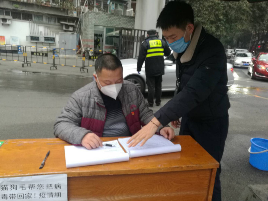 冬春交替,春寒料峭,再加上二月的成都阴霾湿冷,给疫情防控带来困难。体育学院陶海波、许春虎、汪文波、王强等党员同志响应号召积极参与校区值守志愿服务。他们克服困难、排除天气干扰,冒着寒风坚守在望江校区南大门防控一线协助学校保卫处进校人员进行全面排查并登记信息,并及时劝返校外人员为将疫情防控在校园外,守护学校师生健康做出了自己的贡献。
