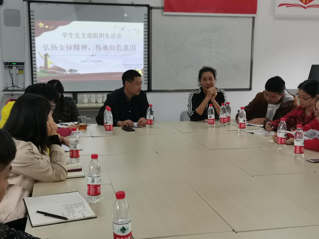 2020年10月26日下午,我院研究生党支部在党员活动会议室举办了“弘扬女排精神,传承红色基因” 交流座谈会。会议邀请到了英国上市公司365体育学院计丽萍老师(原中国女排国家队二传)与同学们做分享。出席会议的还有学院党总支书记夏泽友、学生科科长兼学院团委书记周湉、学院党建工作负责老师朱亮宇。